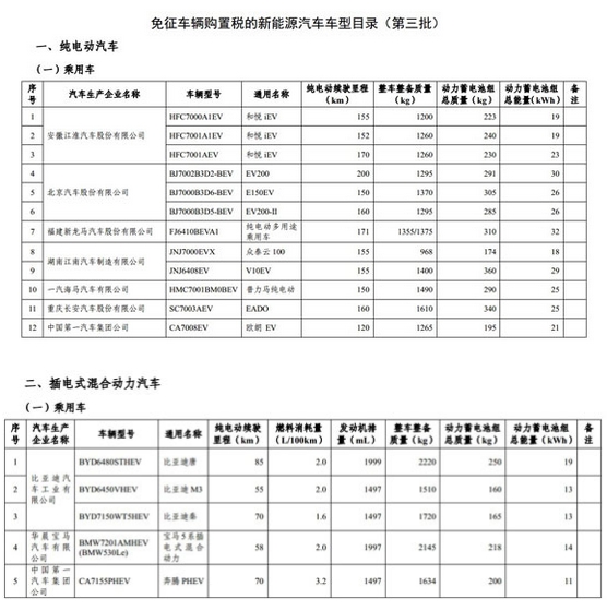 第三批目錄仍包含了純電動(dòng)汽車和插電式混合動(dòng)力汽車兩種類型產(chǎn)品,其中純電動(dòng)車包括了剛剛上市的北汽EV200,還有擁有不同續(xù)航能力的江淮和悅iEV等多款車型。而在插電式混合動(dòng)力車型中,即將上市的華晨寶馬530Le是唯一一款合資品牌的產(chǎn)品,此外像比亞迪秦、比亞迪唐也都出現(xiàn)在第三批目錄當(dāng)中。