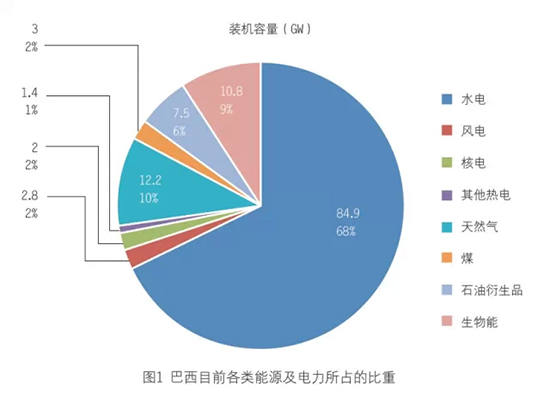 目前巴西的各類能源及電力結構中,水電占比逾70%,天然氣及化石燃料約30%,風電自2002年開始起步,發展迅速,占比已達到2%(見圖1)。