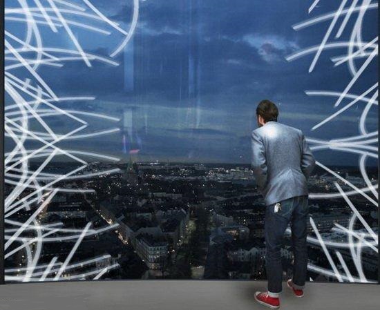 藝術家描繪的瑞典首都“多毛摩天大樓”,這種多毛結構事實上是纖細的纖維體,隨風飄動可將風能轉化為電能
