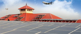 科欽國際機場有限公司(CIAL)將成為首家在印度喀拉拉的依靠太陽能供電運行的機場。當空運貨站附近橫跨45英畝的太陽能光伏板投入使用后,在不久的將來,科欽機場所有的操作功能每天將要消耗5萬至6萬千瓦時,技術上,機場將絕對成為一個電力系統中性點,CIAL強調說。