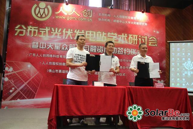 9月19日上午,由人人創(chuàng)股權(quán)投融資平臺(tái)舉辦的“分布式光伏發(fā)電站學(xué)術(shù)研討會(huì)暨中天星眾籌項(xiàng)目融資成功簽約儀式”,在佛山南海區(qū)里水鎮(zhèn)東部工業(yè)區(qū)中金路1號(hào)中企綠色總部中心隆重舉行。其中,光伏專家團(tuán)隊(duì)、互聯(lián)網(wǎng)金融資深人士、資深投資人、社會(huì)各界特邀嘉賓,及廣佛地區(qū)多家主流媒體出席了活動(dòng)現(xiàn)場(chǎng),共同見(jiàn)證全國(guó)首個(gè)眾籌分布式光伏發(fā)電站在佛山誕生。