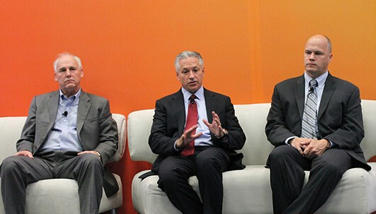 圖:從左至右依次為Dave Ramm(BrightSource董事長兼首席執行官)、Kevin Smith(SolarReserve首席執行官)、Fred Redell(Abengoa美國公司總經理)