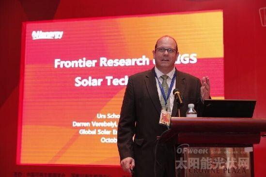 漢能GSE全球副總裁Darren Verebelyi介紹CIGS技術(shù)。