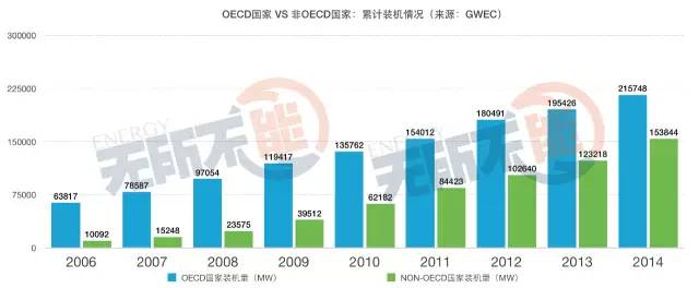 5.OECD國家VS非OECD國家累計裝機情況對比