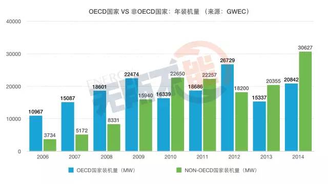 6.OECD國家VS非OECD國家年裝機量對比