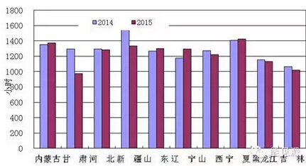 2015年1-9月份風電裝機較多省份風電設備利用小時