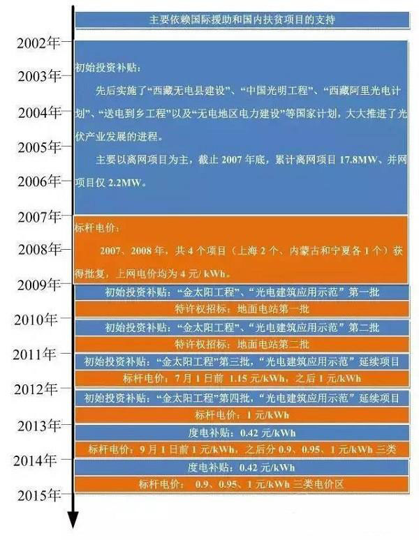 先用一張圖來說明一下,我國對光伏產業的補貼歷程。