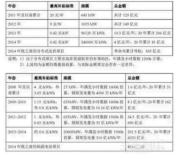 對于分布式光伏項目,2012年及之前基本為初始投資補貼,2013年后開始實行度電補貼;