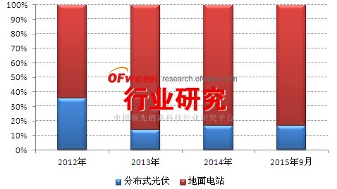 圖表2:2012-2015年9月中國(guó)分布式光伏占比情況(%)