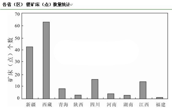 各省(區(qū)) 鋰礦床(點)數(shù)量統(tǒng)計
