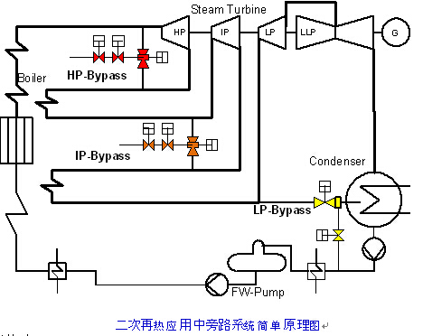 因為多了中旁閥,形成高中低三級串聯旁路系統,較一次再熱的二級串聯旁路復雜,因此需要各級旁路同時協同配合以完成整個啟動過程。同時這種復雜性對鍋爐的影響也很大,運行時對閥門的控制性要求更高。