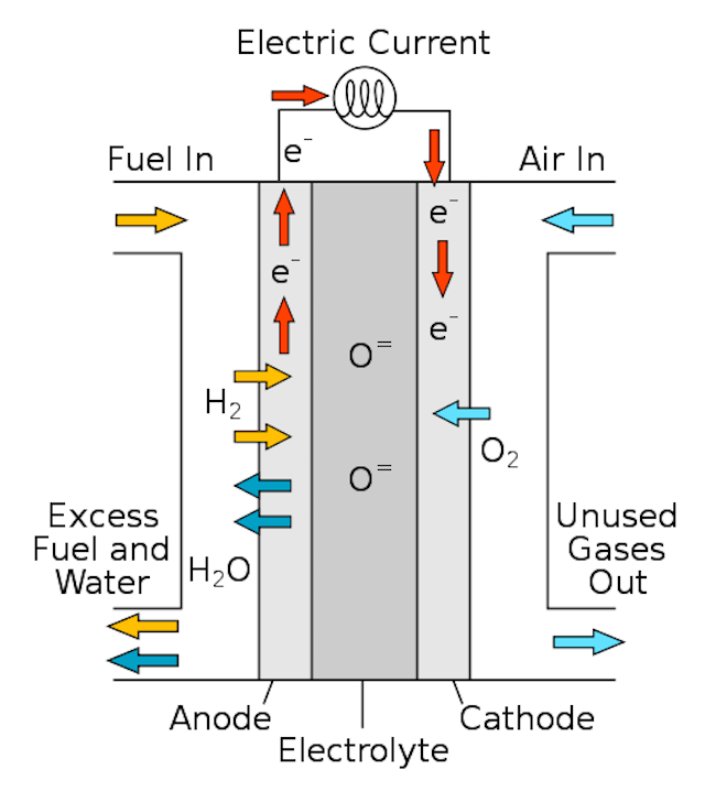 固態氧化物燃料電池工作原理。[3]