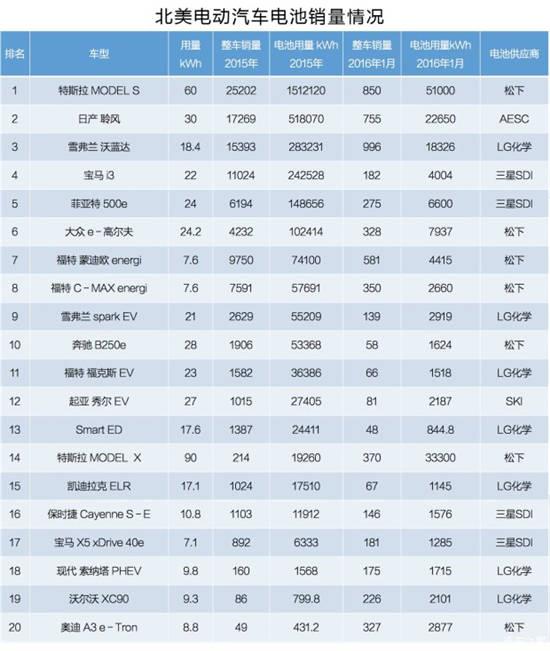 銷量排行前20車型中,對應的電池供應商有日本的松下和AESC,韓國的LG化學、三星SDI和SKI。北美電動汽車電池的供應商基本被日本和韓國壟斷,其中日本廠商又占了上風。據數據顯示,松下獨占北美電動汽車電池市場56%的市場份額。加上日本AESC,兩家電池廠商就占據了北美電動汽車市場電池供應的72%,而剩余的28%也被韓國廠商瓜分所剩無幾。