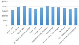 雷丁和沙斯塔/喀斯喀特地區(qū)盡管太陽能支付最大,每千瓦裝機量支付成本最少為補貼后 3,178美元/kW。