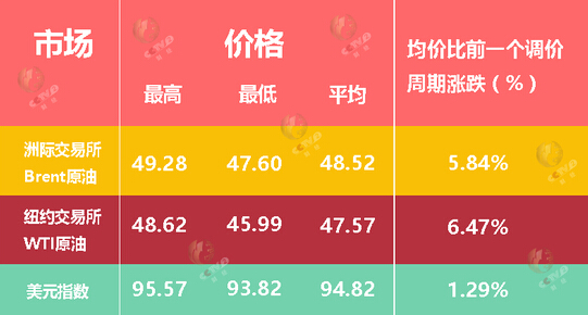 5月24日,因美國(guó)原油庫(kù)存減少,價(jià)格再度上漲,布倫特、WTI原油期貨收盤(pán)價(jià)格分別為48.61美元、48.62美元,其中WTI原油期貨價(jià)格再創(chuàng)去年10月以來(lái)的新高,比國(guó)內(nèi)成品油調(diào)價(jià)前分別上漲6.8%、9.2%。