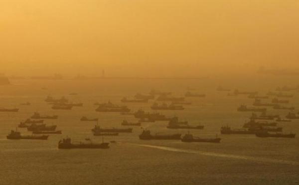 新加坡海域密密麻麻的油輪,其中大部分都處于靜止?fàn)顟B(tài)