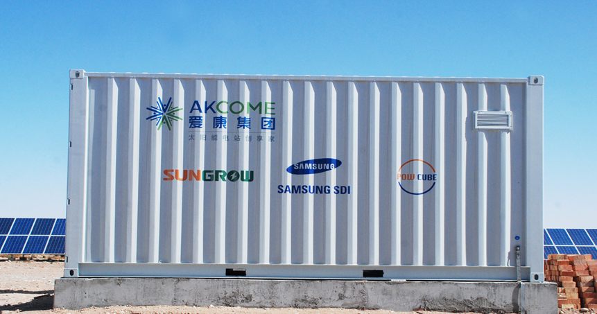 陽光三星為該項目提供全套的設計方案,包括2臺陽光三星PowCube 550儲能系統,該系統采用20呎集裝箱集成設計,每臺集裝箱集成550kWh三星三元鋰電池、直流變換器、BMS、智能溫控、自動消防、配電、通訊等全套設備,并采用直流側接入方案。所謂直流側接入,即在不改變現有光伏電站原有設備、配置的情況下,在光伏組件與光伏逆變器的直流母線端并聯儲能系統。
