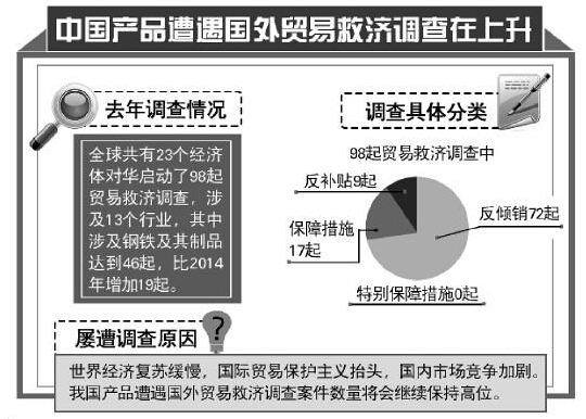 據(jù)了解,98起貿(mào)易救濟調(diào)查中,反傾銷72起,反補貼9起,保障措施17起。