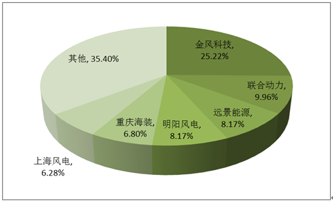 全國累計裝機1.45億千瓦,截至2015年底,有五家整機制造企業裝機容量超過1000萬千瓦,市場份額合計達到56.8%。