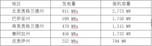 巴西各個州風電裝機容量及發電量詳情見下表: