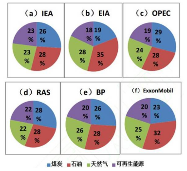 基準情景下主流機構和石油公司對2030年全球能源結構的預測