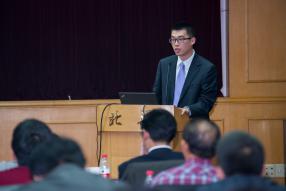 圖為國家紡織產業節能減排技術支撐聯盟副秘書長王偉民互動發言