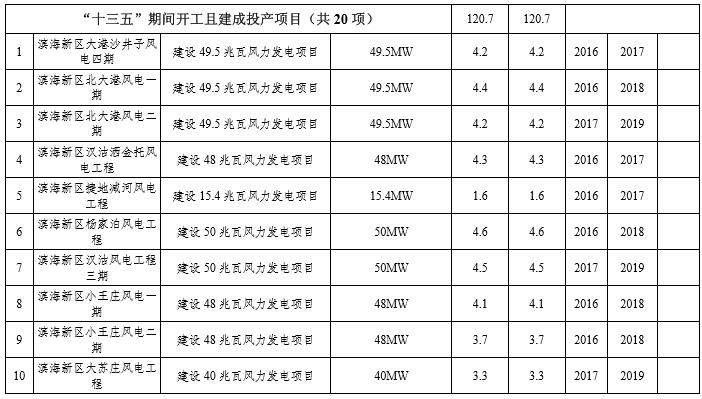 “十三五”期間,堅持陸上和海上并舉,優化發展陸上風電,穩妥推進海上風電;鼓勵對低風速資源的開發利用,發展分布式小型風電。根據地區資源稟賦,以濱海新區作為重點發展區域,重點推進北大港風電場工程(一期裝機4.95萬千瓦,二期裝機4.95萬千瓦)、大港沙井子風電場工程(四期裝機4.95萬千瓦)、大港大蘇莊風電場工程(裝機4萬千瓦)、大港捷地減河風電場工程(裝機1.54萬千瓦)、漢沽灑金坨風電場工程(裝機4.8萬千瓦)、大港小王莊風電場工程(一期裝機4.8萬千瓦、二期裝機4.8萬千瓦)、漢沽楊家泊風電場工程(裝機5萬千瓦)、漢沽三期風電場工程(裝機5萬千瓦)、漢沽大神堂風電場工程(二期裝機5萬千瓦,三期裝機5萬千瓦)、靜海西雙塘風力發電場工程(一期裝機4.8萬千瓦,二期裝機5萬千瓦)等陸上風電和南港海上風電場工程(一期裝機9萬千瓦,二期裝機10萬千瓦)、大港馬棚口海上風電場工程(裝機10萬千瓦)建設。到2020年,全市風電裝機總規模達到116萬千瓦。