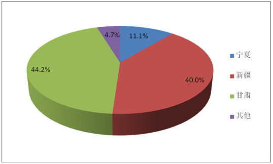 2016Q1西北各城市棄光量占全國棄光量的比例