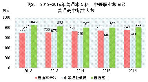 全年研究生教育招生66.7萬人,在學研究生198.1萬人,畢業生56.4萬人。普通本專科招生748.6萬人,在校生2695.8萬人,畢業生704.2萬人。中等職業教育[48]招生593.3萬人,在校生1599.1萬人,畢業生533.7萬人。普通高中招生802.9萬人,在校生2366.6萬人,畢業生792.4萬人。初中招生1487.2萬人,在校生4329.4萬人,畢業生1423.9萬人。普通小學招生1752.5萬人,在校生9913.0萬人,畢業生1507.4萬人。特殊教育招生9.2萬人,在校生49.2萬人,畢業生5.9萬人。學前教育在園幼兒4413.9萬人。九年義務教育鞏固率為93.4%,高中階段毛入學率為87.5%。