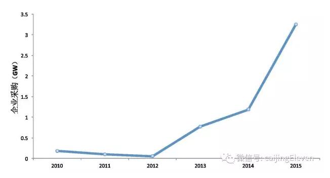 近年來,蘋果、通用汽車等美國企業可再生能源采購量逐年走高,給市場發出了積極的信號。2009年,美國新建的可再生大型地面電站的產出基本全部賣給了電力公司,自2010年以來,企業采購可再生能源電力的勢頭增強,到2015年,企業可再生能源采購占到了當年新增裝機容量的40%,其中,企業直購風電比重更高達當年新增風電總量的56%。