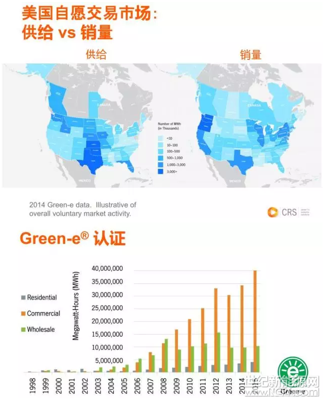 自愿性市場剛剛建立起來的時候交易量非常小,然后在2012、2013年的時候,美國建立了Green-e系統,有很多公司就加入進來,他們買的就是這個可再生能源的綠證證書。
