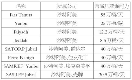 表為沙特當(dāng)前煉廠及生產(chǎn)能力