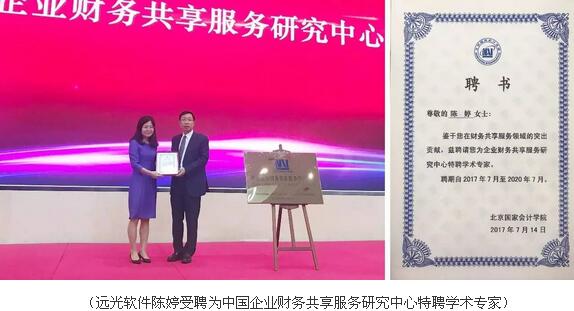 2017年7月14日,以“財務(wù)共享服務(wù)何去何從——展現(xiàn)跨界融合之美”為主題的第四期國會大講堂在北京國家會計學(xué)院隆重舉行。會上,由北京國家會計學(xué)院與遠光軟件等三家單位合作組建的“中國企業(yè)財務(wù)共享服務(wù)研究中心”宣布成立,北京國家會計學(xué)院院長秦榮生向遠光軟件共享服務(wù)咨詢總監(jiān)陳婷授予研究中心特聘學(xué)術(shù)專家證書。
