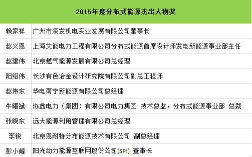 為肯定和表彰本年度在中國分布式能源領域做出突出貢獻的企業與個人,由中國能源網發起、會議主辦方大力支持的“2015(第十一屆)分布式能源國際論壇獎項評選”活動結果在會議期間正式公布。獎項分為:2015年度中國分布式能源優秀項目獎、優秀設計單位獎、杰出貢獻人物獎。