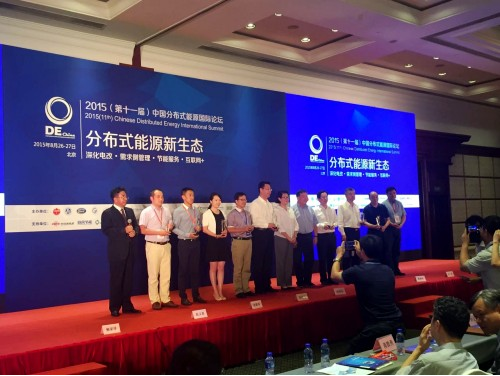 2015年8月26-27日,“2015(第十一屆)中國分布式能源國際論壇”在北京召開。本屆論壇由中國能源研究會、中國企業投資協會、中國電機工程學會、中國城市燃氣協會、中國沼氣學會、中國可再生能源學會、國家節能中心和中國能源網共同主辦。來自政府部門、行業協會、新能源企業、燃氣企業、節能服務、金融投資以及關注分布式能源和能源互聯網未來發展的200余位專業人士到會,了解分布式能源發展的最新動態,探討分布式領域的新政策。