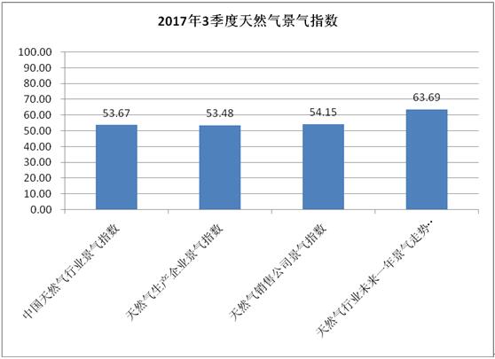 2017年3季度中國天然氣行業景氣指數為53.67,處于一般景氣狀態,與2017年2季度景氣指數52.27相比有所上升,季節景氣變動系數為1.027。從統計數據來看,與2017年2季度比較:宏觀經濟指標基本保持不變,天然氣進口狀態指標有一定幅度下降,天然氣行業專家判斷指標有一定幅度上升,天然氣生產企業經營狀態指標和天然氣銷售公司經營狀態指標均有較小幅度上升。因此,2017年3季度中國天然氣行業景氣指數總體呈現上升態勢。 [詳細]