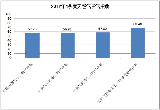 2017年4季度中國天然氣行業景氣指數為57.26,處于一般景氣狀態,與2017年3季度景氣指數53.67相比有較大幅度所上升,季節景氣變動系數為1.067。從統計數據來看,與2017年3季度比較,宏觀經濟指標基本保持不變,天然氣進口狀態指標與天然氣行業專家判斷指標大幅上升,天然氣生產企業經營狀態指標和天然氣銷售公司經營狀態指標也均有較大幅度上升。因此,2017年4季度中國天然氣行業景氣指數總體呈現上升態勢。 [詳細]