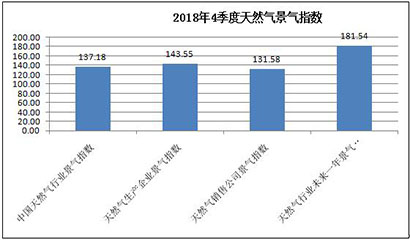 中國天然氣行業景氣指數統計結果顯示:2018年4季度中國天然氣行業景氣指數為137.18,處于較景氣狀態;天然氣生產企業景氣指數為143.55,處于較景氣狀態;天然氣銷售公司景氣指數為131.58,處于較景氣狀態;天然氣行業未來一年景氣走勢指數為181.54,處于景氣狀態。 [詳細]