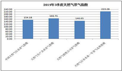 中國天然氣行業景氣指數統計結果顯示:2019年3季度中國天然氣行業景氣指數為154.18 ,處于較景氣狀態;天然氣生產企業景氣指數為166.75 ,處于景氣狀態;天然氣銷售公司景氣指數為146.65 ,處于較景氣狀態;天然氣行業未來一年景氣走勢指數為223.28 ,處于很景氣狀態。 [詳細]