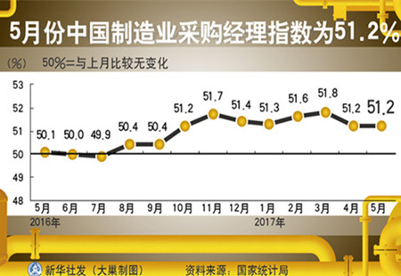 國(guó)家統(tǒng)計(jì)局解讀:制造業(yè)PMI保持?jǐn)U張態(tài)勢(shì)5月份,制造業(yè)PMI為51.2%,與上月持平,高于去年同期1.1個(gè)百分點(diǎn),連續(xù)8個(gè)月位于51.0%以上的擴(kuò)張區(qū)間,制造業(yè)繼續(xù)保持平穩(wěn)增長(zhǎng)的發(fā)展態(tài)勢(shì)。 [詳細(xì)]