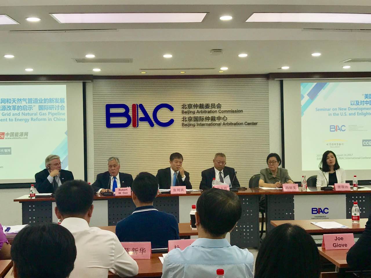 2017年8月,在美國前能源部副部長Robert W. Gee先生的帶領下,美國州公共設施監管委員會代表團到北京進行工作訪問。8月24日,該代表團成員受邀出席了北京仲裁委員會、北京國際仲裁中心、中國能源網聯合主辦的“美國電網和天然氣管道業的新發展以及對中國能源改革的啟示”國際研討會,介紹美國監管經驗,對話中國行業專家。
