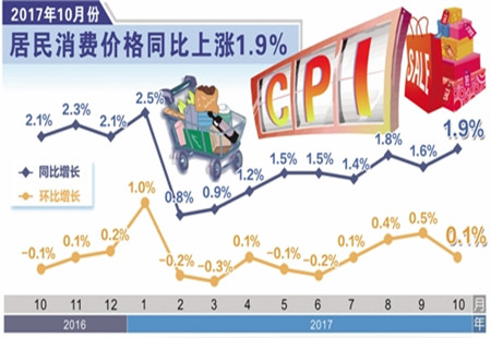 CPI漲幅連續(xù)9個(gè)月低于2% 專家:完成全年目標(biāo)無(wú)憂國(guó)家統(tǒng)計(jì)局9日公布的數(shù)據(jù)顯示,10月份CPI同比上漲1.9%,漲幅比上月擴(kuò)大0.3個(gè)百分點(diǎn),CPI漲幅連續(xù)9個(gè)月低于2%。分析認(rèn)為,四季度物價(jià)不會(huì)出現(xiàn)明顯抬升,完成全年物價(jià)調(diào)控目標(biāo)沒(méi)有問(wèn)題。 [詳細(xì)]