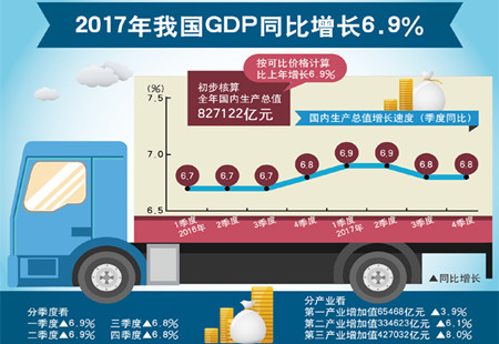 2017年中國(guó)GDP增長(zhǎng)6.9% 7年來(lái)首次提速國(guó)家統(tǒng)計(jì)局周四公布的數(shù)據(jù)顯示,2017年中國(guó)GDP增速為6.9%,較上年加快0.2個(gè)百分點(diǎn),這也是7年以來(lái)中國(guó)經(jīng)濟(jì)首次提速。統(tǒng)計(jì)局表示,2017年中國(guó)經(jīng)濟(jì)運(yùn)行穩(wěn)中向好、好于預(yù)期,經(jīng)濟(jì)運(yùn)行中仍存在不少困難和挑戰(zhàn);要堅(jiān)持穩(wěn)中... [詳細(xì)]