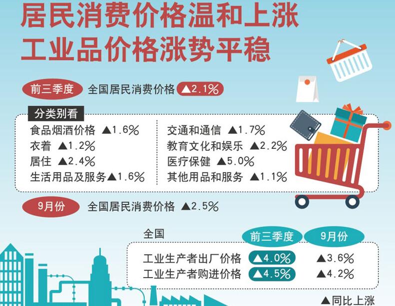 國(guó)家統(tǒng)計(jì)局16日發(fā)布的數(shù)據(jù)顯示,9月份,全國(guó)居民消費(fèi)價(jià)格指數(shù)(CPI)同比上漲2.5%,漲幅比上月擴(kuò)大0.2個(gè)百分點(diǎn),已連續(xù)三個(gè)月處于“2時(shí)代”。專(zhuān)家分析,盡管9月份CPI同比漲幅有所擴(kuò)大,但從食品價(jià)格、服務(wù)價(jià)格 [詳細(xì)]