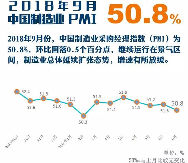制造業(yè)PMI已經(jīng)連續(xù) 26個(gè)月高于“榮枯線(xiàn)”9月30日,國(guó)家統(tǒng)計(jì)局服務(wù)業(yè)調(diào)查中心和中國(guó)物流與采購(gòu)聯(lián)合會(huì)發(fā)布了中國(guó)采購(gòu)經(jīng)理指數(shù)。9月份,制造業(yè)PMI為50.8%,環(huán)比回落0.5個(gè)百分點(diǎn),處于今年3月份以來(lái)的低點(diǎn)。不過(guò),制造業(yè)PMI已經(jīng)連續(xù)26個(gè)月位于50%以上。 [詳細(xì)]