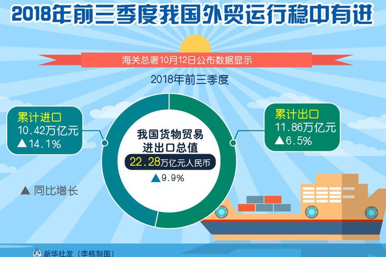 10月19日訊,10月17日,商務(wù)部外貿(mào)司負(fù)責(zé)人介紹了2018年前三季度我國(guó)外貿(mào)運(yùn)行情況。 [詳細(xì)]