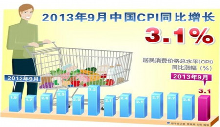 三季度中國(guó)經(jīng)濟(jì)運(yùn)行數(shù)據(jù)本周將陸續(xù)公布,其中9月份全國(guó)居民消費(fèi)價(jià)格總水平(CPI)和全國(guó)工業(yè)生產(chǎn)者出廠價(jià)格(PPI)兩大指數(shù)今日發(fā)布:CPI總水平同比上漲3.1%,比8月份漲幅擴(kuò)大了0.5個(gè)百分點(diǎn);PPI同比下跌1.3%,... [詳細(xì)]