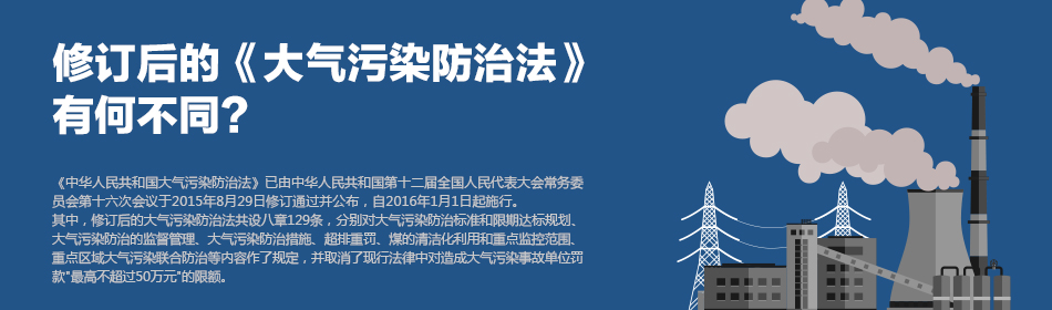 8月29日,《中華人民共和國大氣污染防治法》終于修訂通過并正式公布。該法將于2016年1月1日起施行。【詳細】